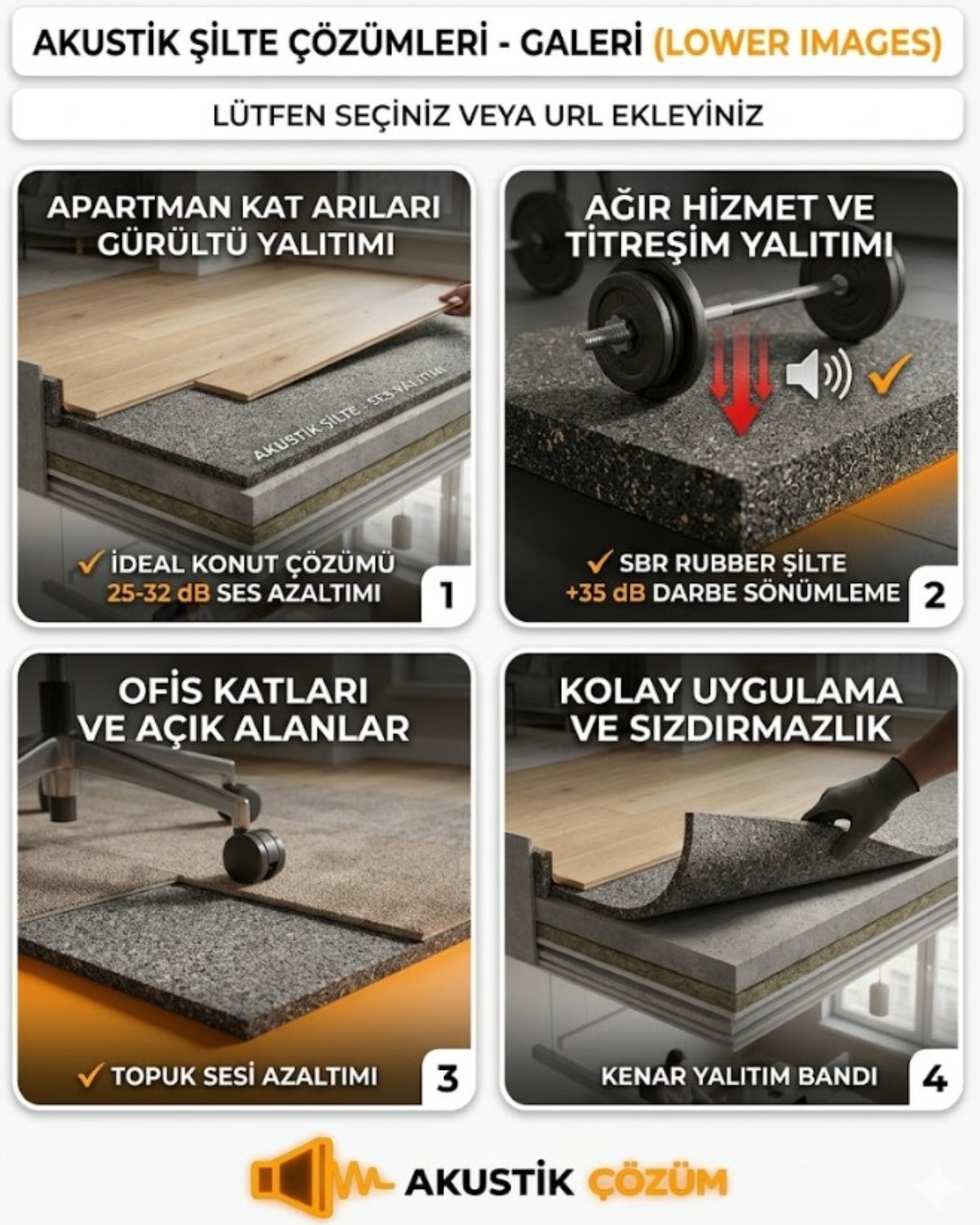 Yaşam ve çalışma alanlarınızda gürültü kontrolü sağlamak için ihtiyaç duyduğunuz yüksek performanslı ses yalıtım malzemeleri ve akustik zemin/duvar çözümleri.