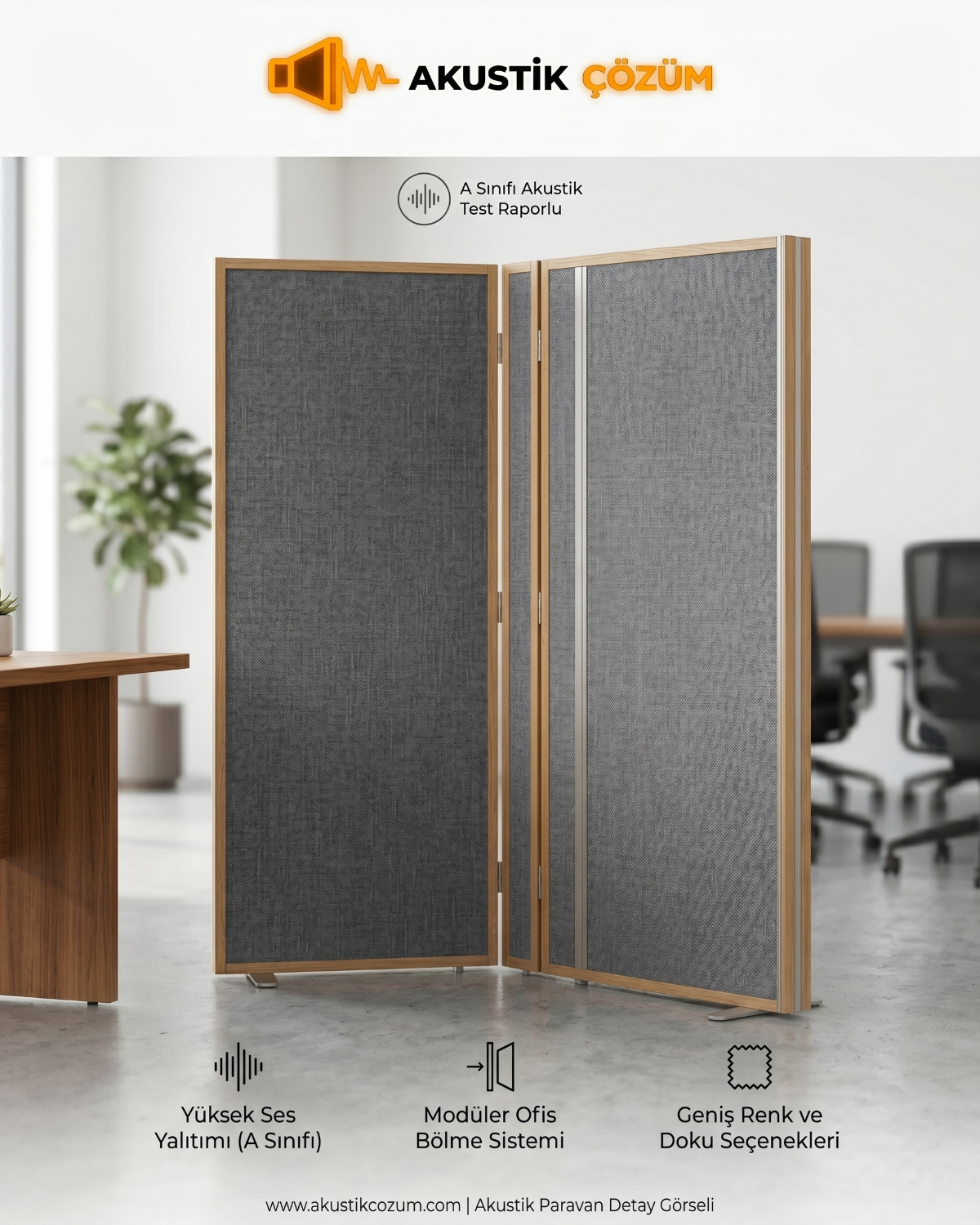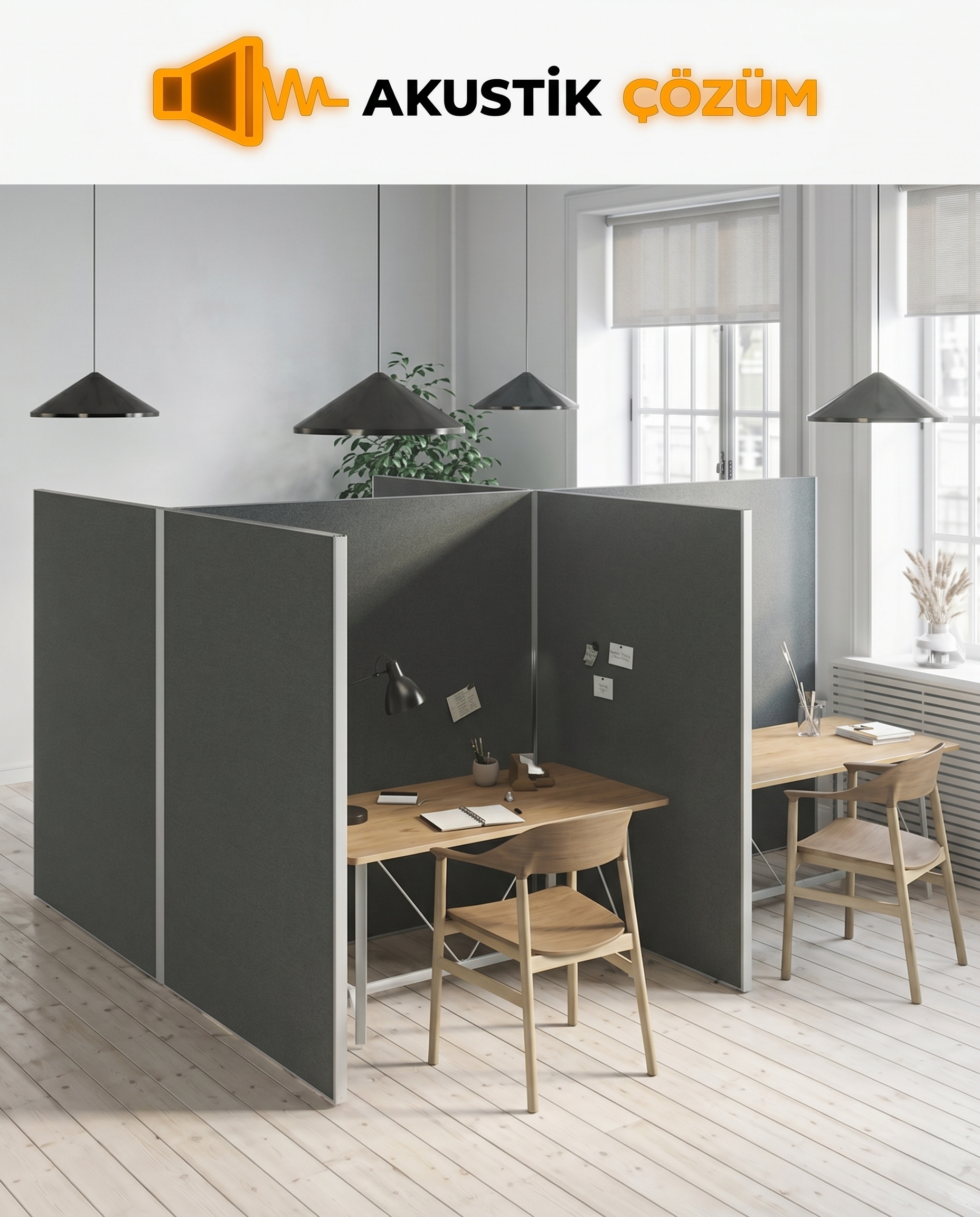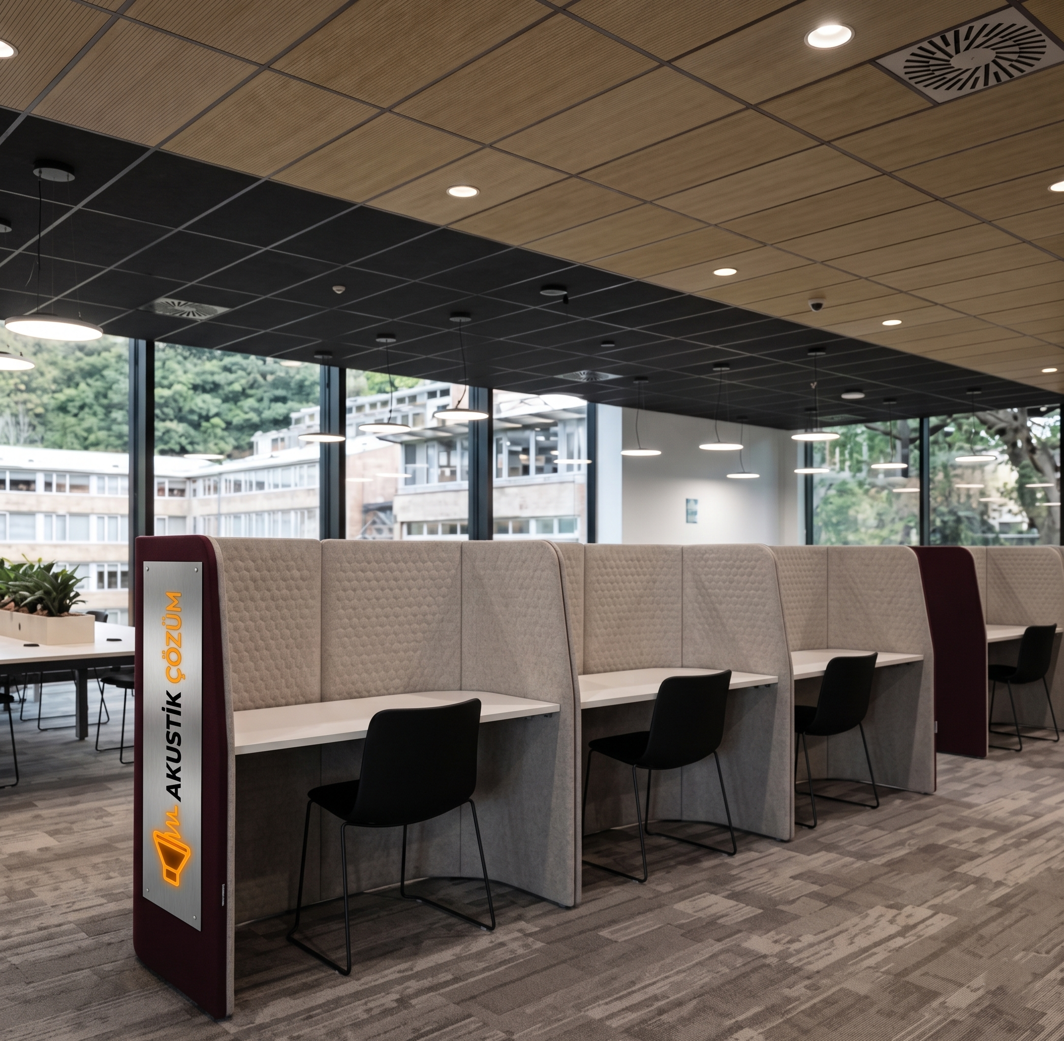 - Masa Arası Akustik Paravanlar: Mevcut çalışma masalarının üzerine özel aparatlarla monte edilir.