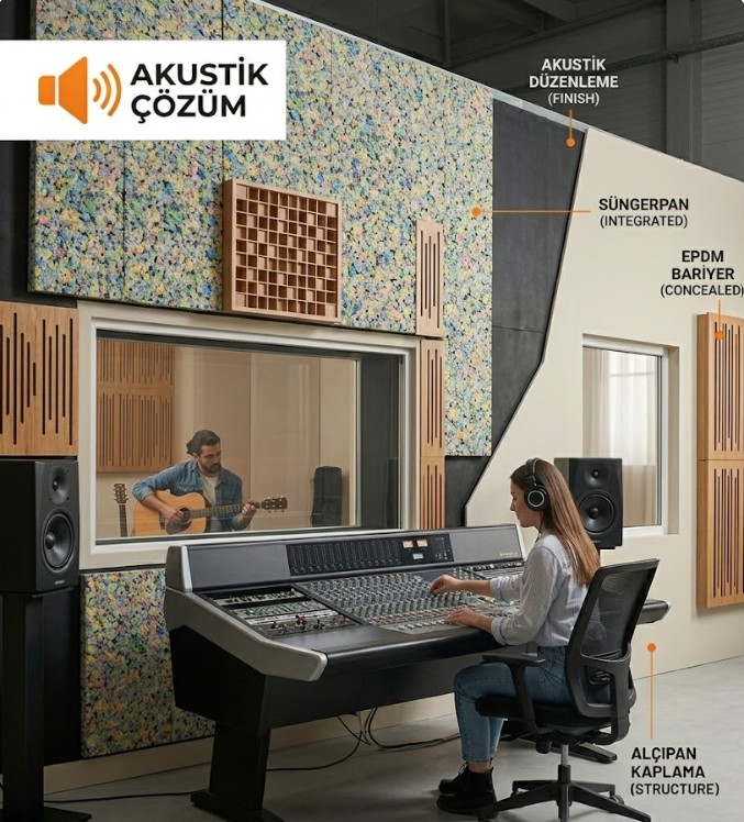 | Akustik Süngerler | Melamin veya poliüretan bazlıdır. Ortamdaki yankıyı keser, sesin net duyulmasını sağlar (Piramit, yumurta vb.). | Orta - Yüksek |
