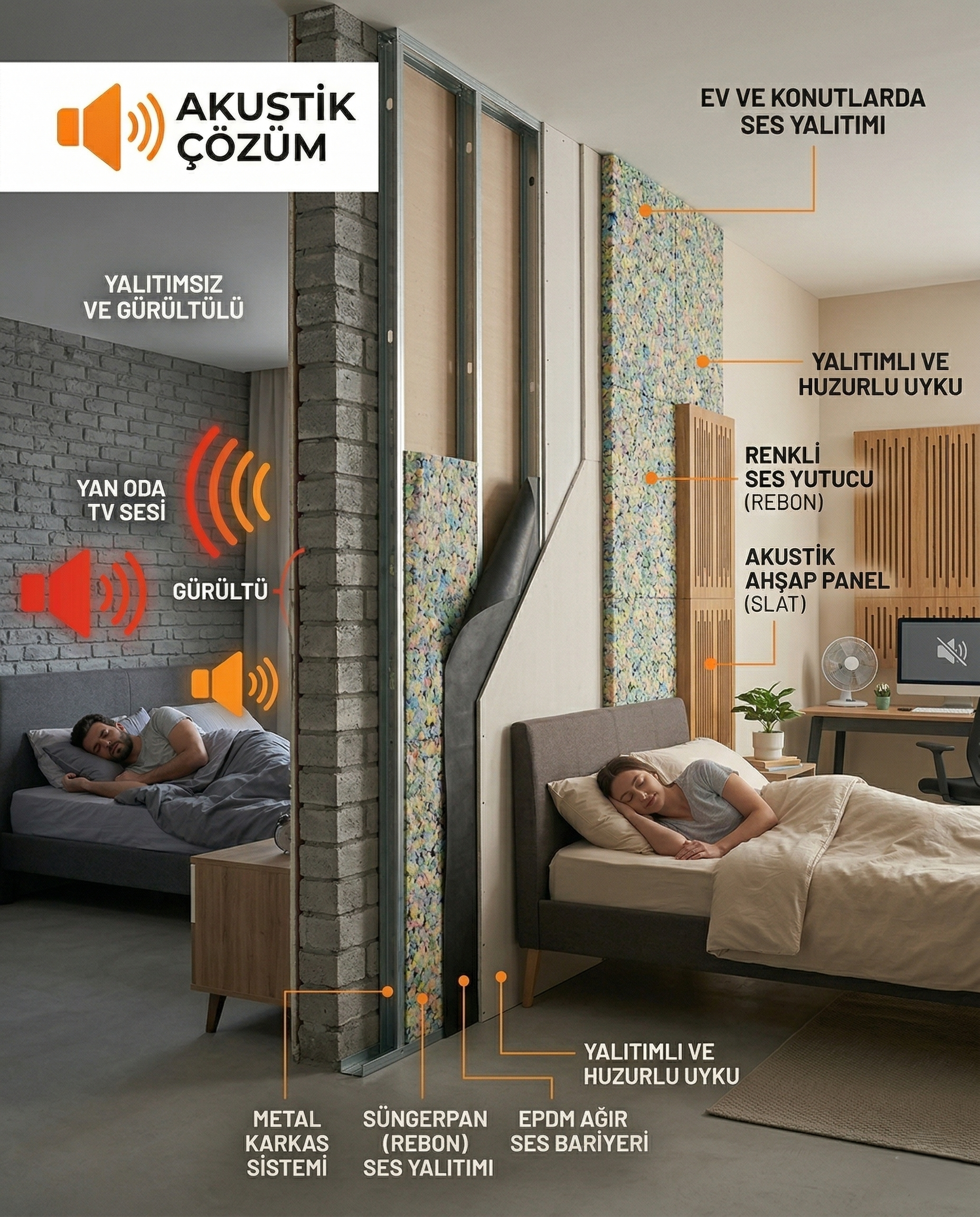Günümüzde artan nüfus yoğunluğu, bitişik nizam yapılar ve şehir hayatının getirdiği gürültü kirliliği, yaşam ve çalışma alanlarında ses izolasyonu ihtiyacını vazgeçilmez bir hale getirmiştir. Evinizde huzuru sağlamak, ofisinizde verimliliği artırmak veya stüdyonuzda profesyonel bir akustik ortam yaratmak istiyorsanız, doğru yöntemlerle yapılmış bir duvar yalıtımı en temel adımdır.
